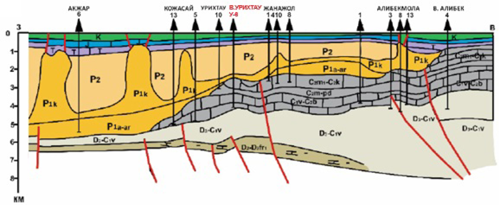 - Azhgaliev DK. Utochneniye modeli stroeniya podsolevoy tolshchi vostochnoy bortovoy zony Prikaspiyskoy vpadiny. Russian Oil and Gas Geology. 2019;6:31–40. doi: 10.31087/0016-7894-2019-6-31-40.