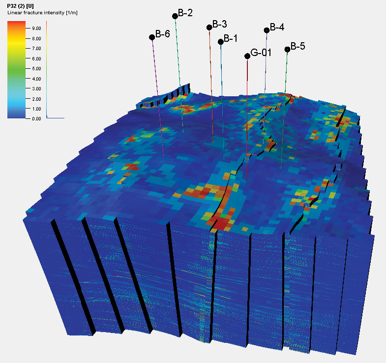 Важно отметить, что полученные характеристики трещин основаны на точечных данных по скважинам, которые не охватывают межскважинное пространство и представляют эту зону как область неопределенности.