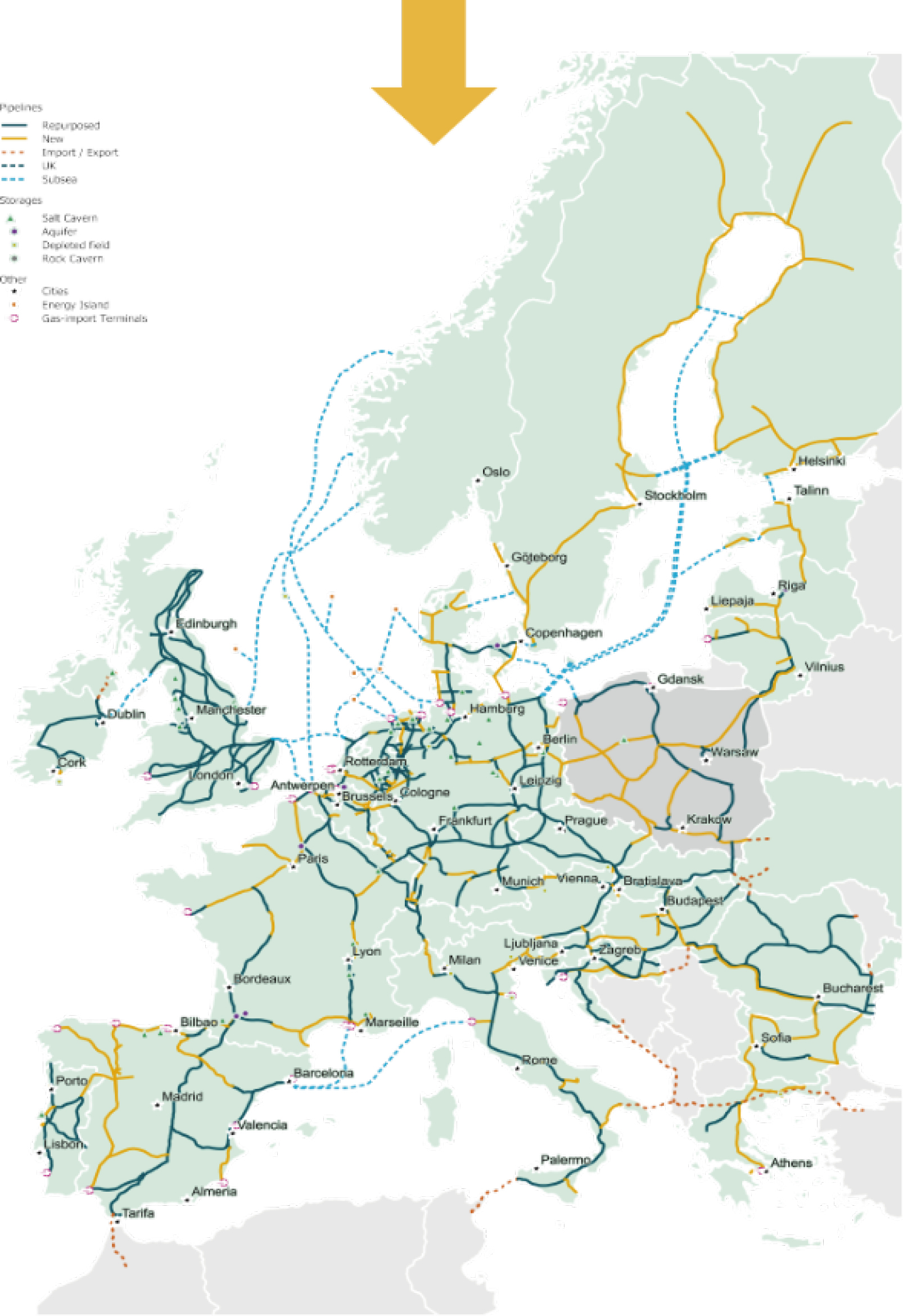 Figure 4. European Backbone vision to the map of Hydrogen pipelines by 2040 [9]