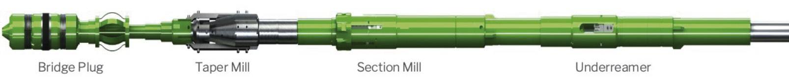 Система фрезерования и расширения ProMILL включает в себя узел мостовой пробки (Optional Bridge Plug), коническую фрезу (Taper Mill), секцию фреза (Section Mill) и расширитель с высоким передаточным числом (PMUR – ProMILL Underreamer) в одном решении (рис. 2).