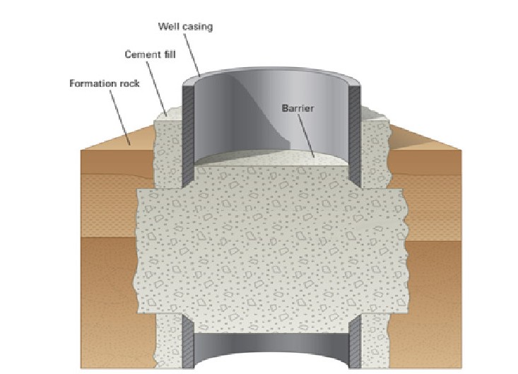 - бетонный барьер обеспечивает надёжную изоляцию от породы к породе, т.е. устраняет пути миграции и перетоки ВГС в заколонном пространстве и цементном стакане в области забоя, а также потери герметичности ОК;