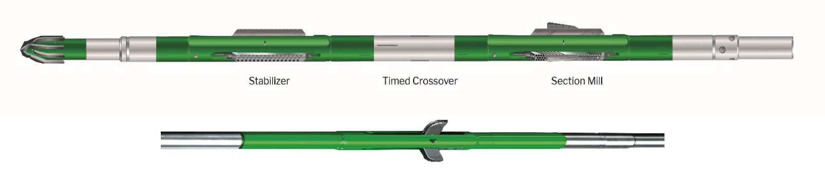 The extended reach Section Mill and hydraulic Stabilizer provides an efficient milling system in dual casing abandonment applications. A rock-to-rock barrier is enabled by using the PMUR.