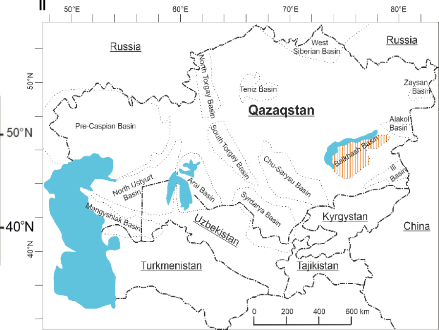 Figure 2. Geographical location of the Balkhash Basin on the territory of Kazakhstan