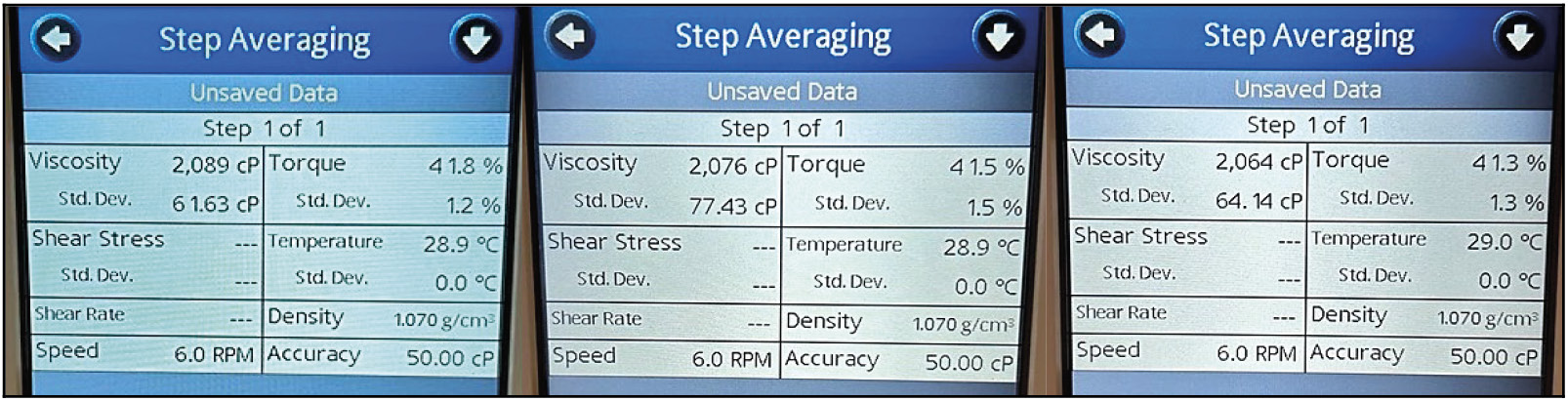 Figure 4. Viscosity test results for polymer solution based on distilled water