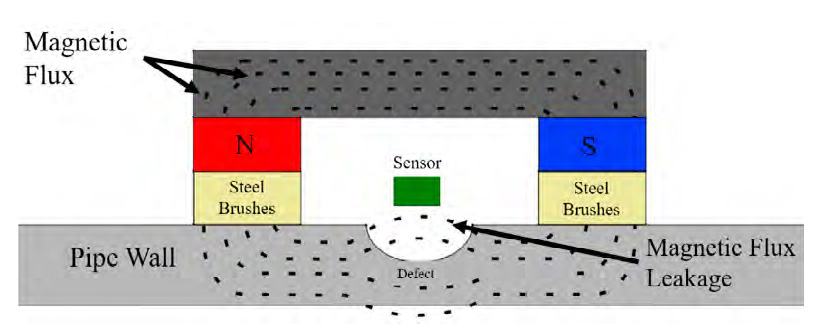 Studies on MFL have demonstrated its effectiveness in detecting metal loss features like corrosion. According to the sources [3–5], MFL technology (Fig. 3) provides several advantages: it enables rapid coverage of large areas, is non-intrusive with minimal surface preparation, and is highly effective in detecting corrosion and pitting.