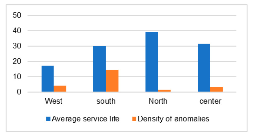 Figure 9. Average service life and anomaly density by region