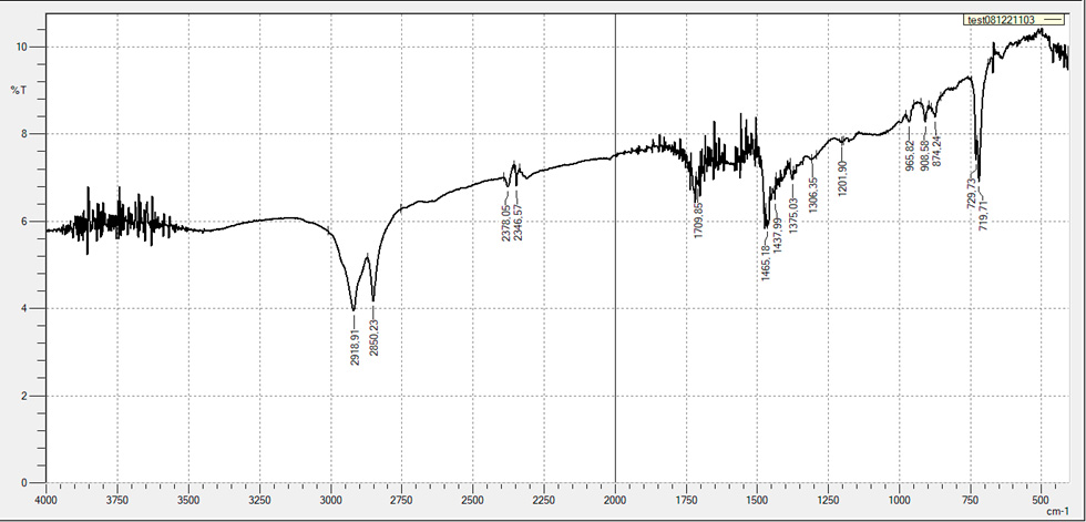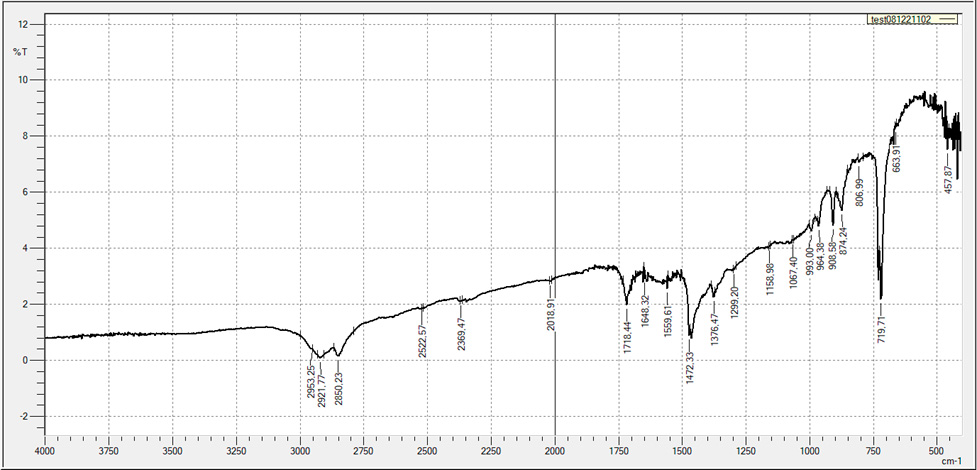 Figure 2. FTIR spectrum of PE 153-10K, 175 kGy, 5/10