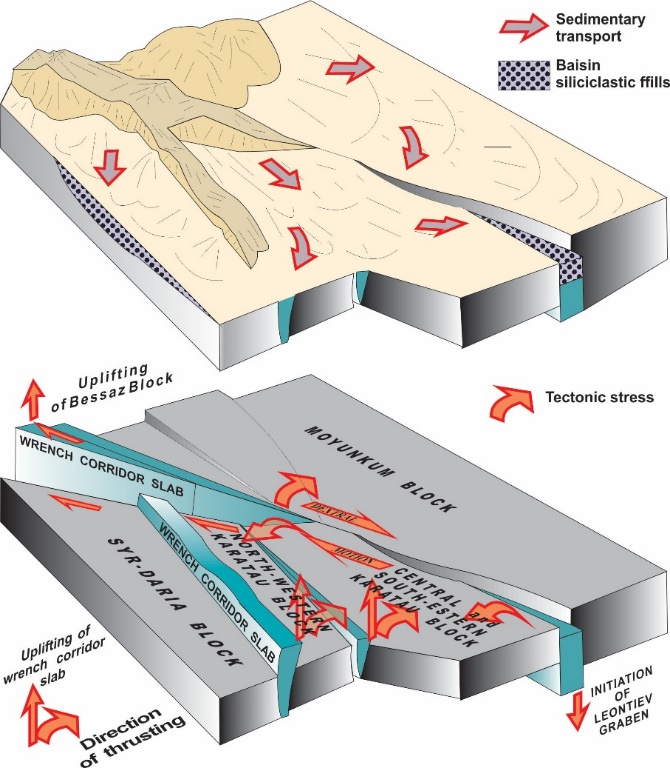 The Mesozoic succession includes, Jurassic lacustrine-alluvial deposits accumulated in the Leontinov graben [2] (Fig. 1) which was formed by the dextral strike-slip movements along the Main Karatau Fault, and Cretaceous continental clastics of debatable origin.