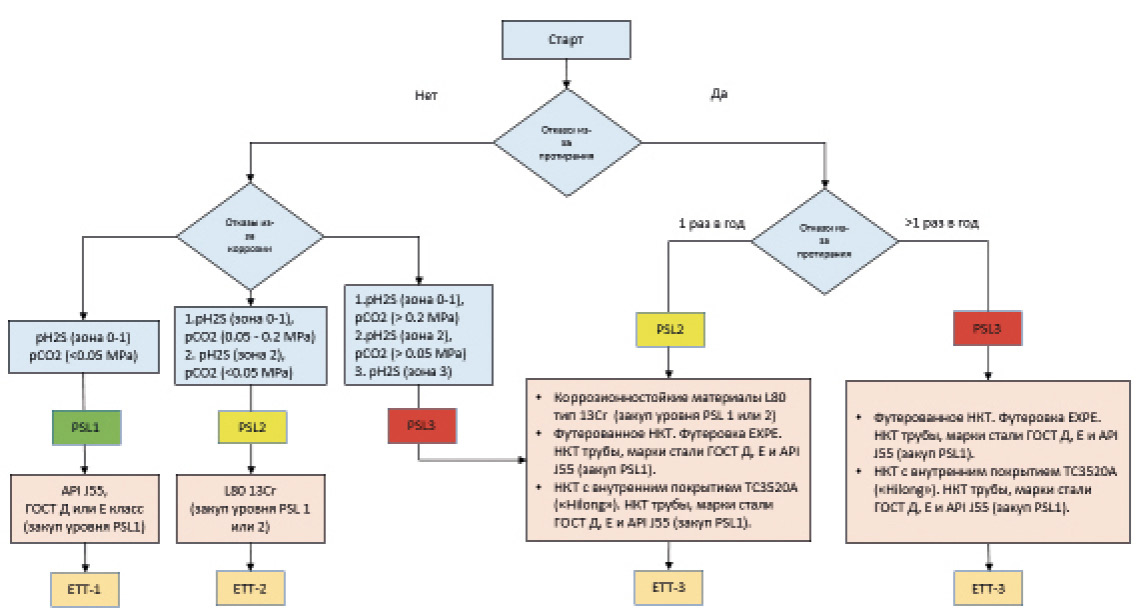 Согласно API-концепции заказчик определяет уровень технических требований PSL. Для этой цели на рис. 12 приведена схема по подбору PSL-уровней. В случае необходимости заказчик имеет право ужесточить требования при подборе PSL-уровня для НКТ.