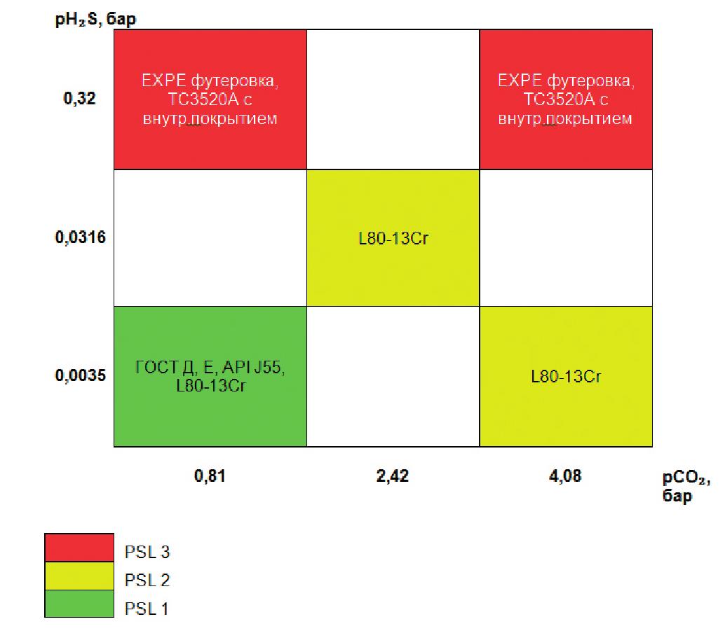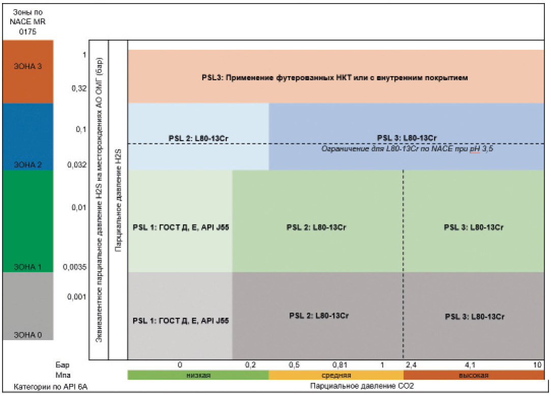 Для каждой PSL-зоны подбирается соответствующий материал НКТ. На рис. 12 представлены PSL-зоны с рекомендуемыми к применению НКТ с соответствующими требованиями к металлу – единые технические требования (далее – ЕТТ).
