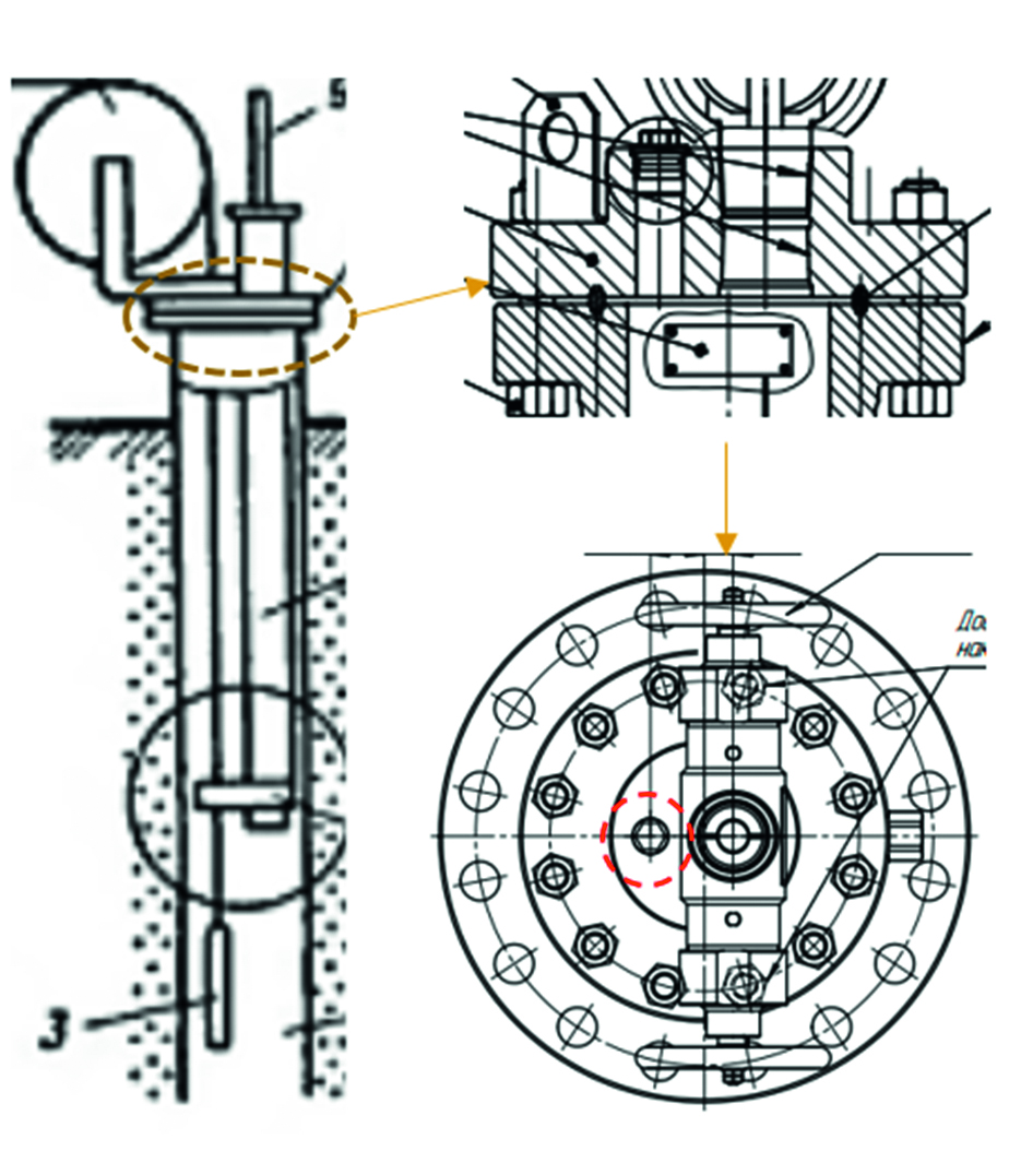 Пробка в эксцентричной планшайбе скважин, оборудованных штанговым глубинным насосом с эксцентричной планшайбой (далее – ШГН + эксцентричная планшайба), дает возможность доступа к пластам с устья геофизическими приборами (рис. 5) [3].