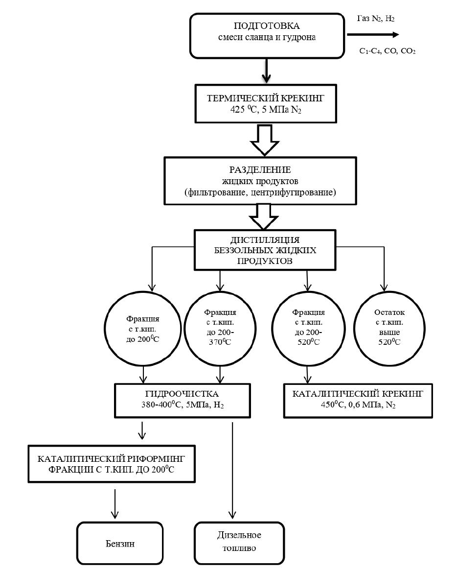 Рисунок 1. Принципиальная схема термокрекинга гудрона в смеси с горючим сланцем