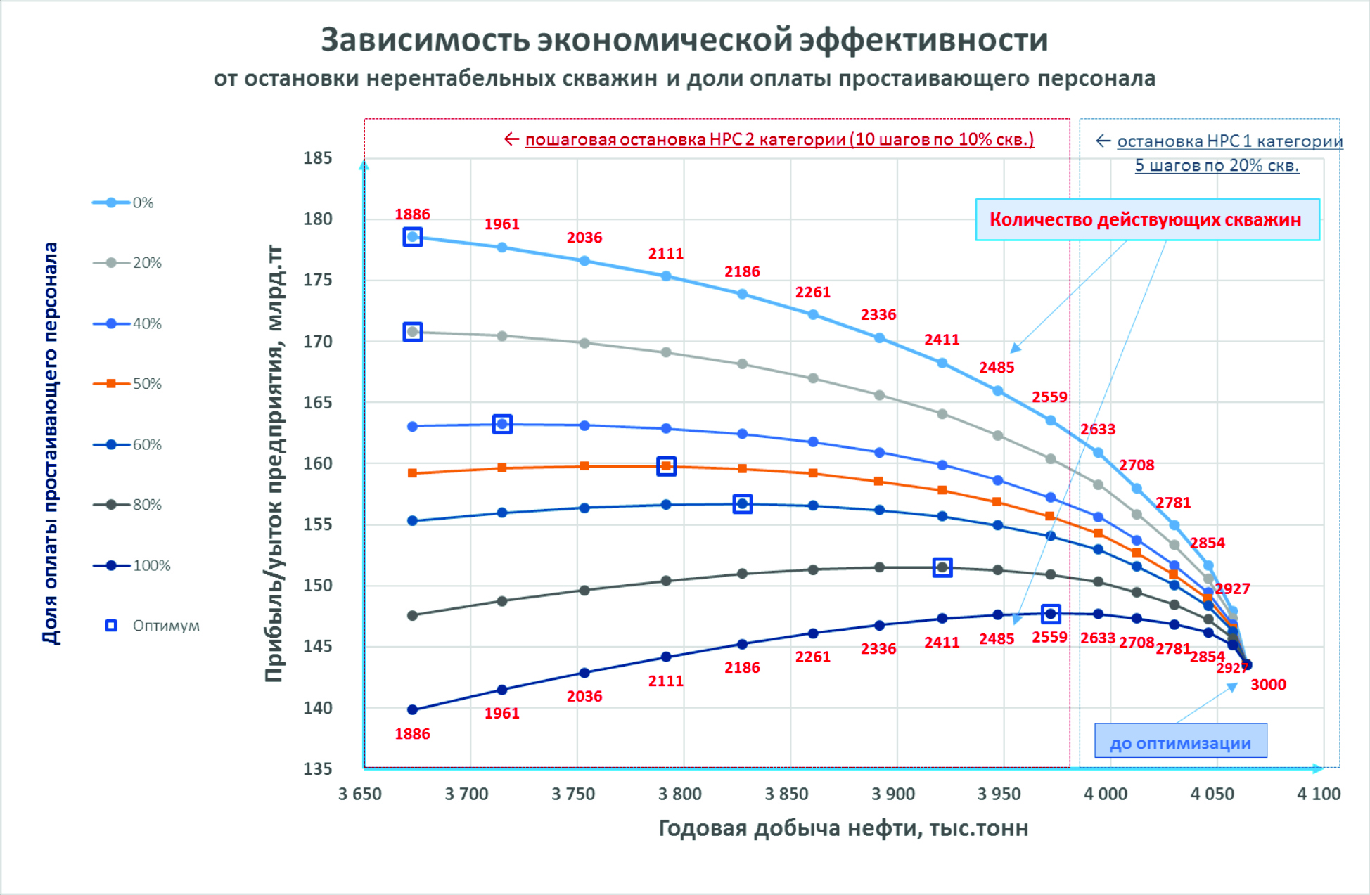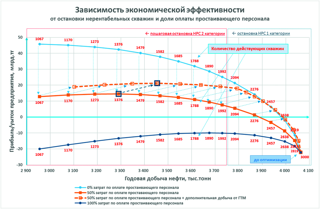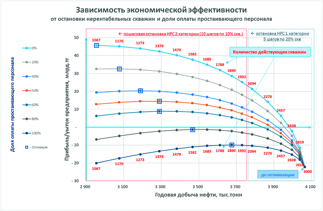 – рекомендуемое количество остановок нерентабельных скважин – меняется от 1114 до 1624 скв.;