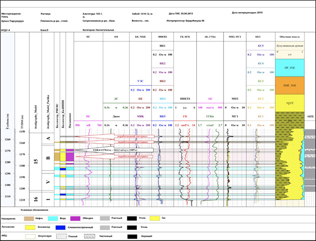Таблица 1. Результаты исследования УКПД скв. XX13
