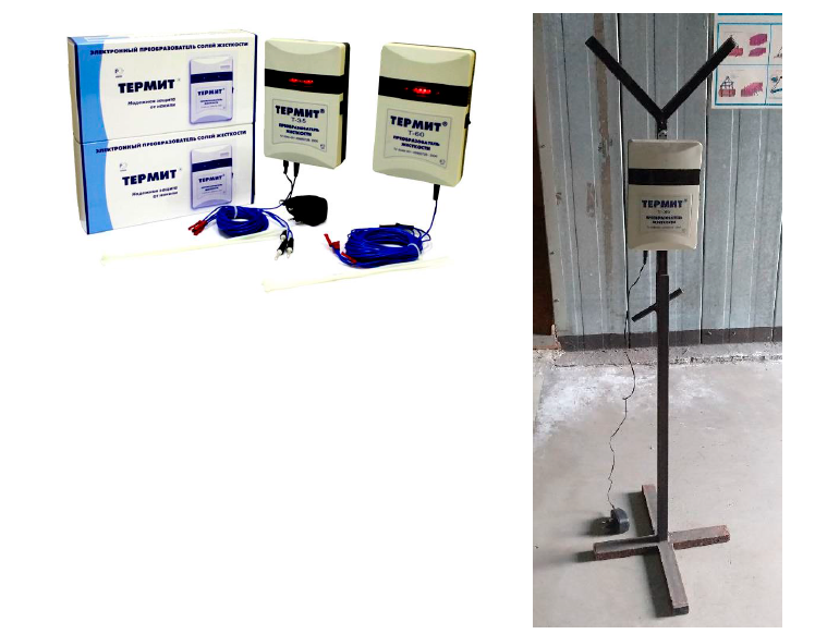 The magnetic treatment of water has been carried out by us with the “Termit” device, which creates low-frequency signals of variable frequency in the range of 1–10 kHz, coming through the wires to transmitters wound by a certain scheme and sequence on the pipeline.