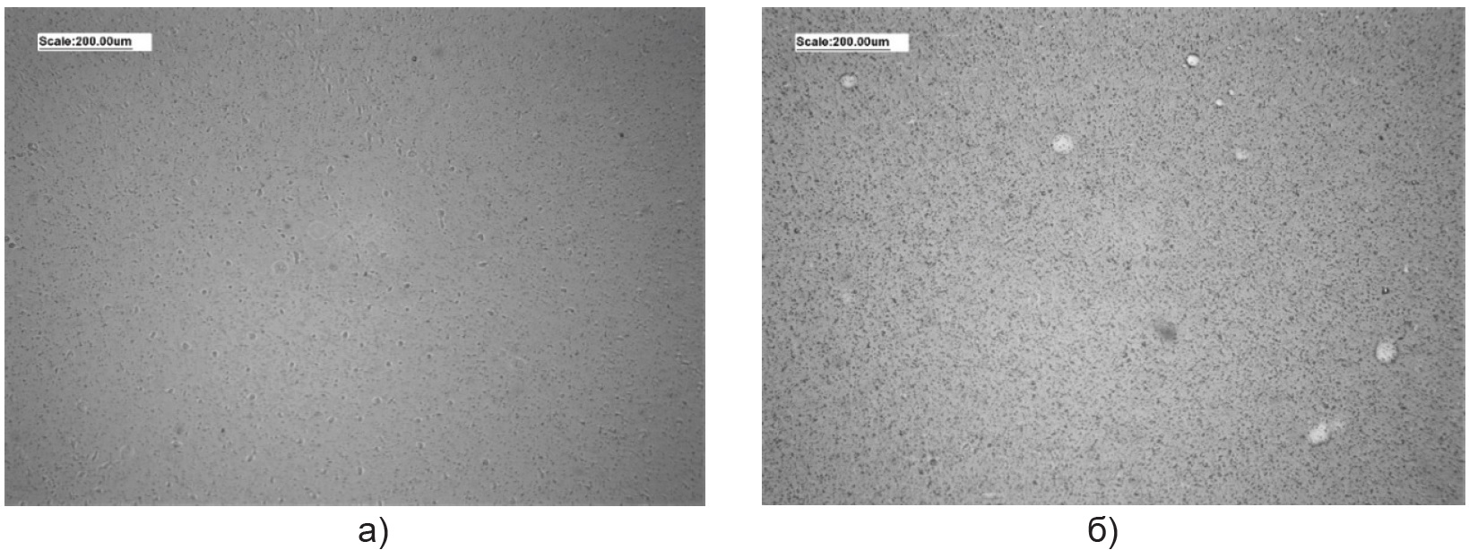 Как видно из послойного анализа холостой пробы (рис. 4–6), наблюдается увеличение содержание глобул воды с верхнего уровня отбора до нижнего. В самом нижнем слое (рис. 3) наблюдается эмульсия.