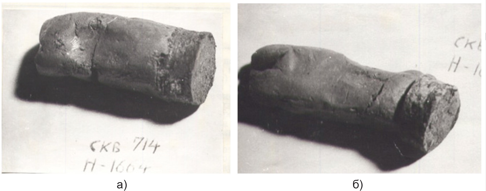 а) образец № 1, глубина 1664 м; б) образец № 2, 1607 м