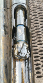 Рисунок 5. Состояние компоновки ТС «Перфобур» для бурения после канала длиной 14 м (следы нефти на буровом модуле)