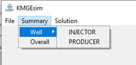 В рамках данной работы создан прототип инструмента визуализации результатов гидродинамического симулятора KMGEsim для моделирования процессов нефтедобычи. В интерфейс визуализатора были добавлены меню File, Summary и Solution. Меню File (рис. 5) состоит из блоков Open и Clear. Блок Open предназначен для открытия файла выходных данных OVERALL, а блок Clear – для очистки графиков в форме. Меню Summary (рис. 6) состоит из блоков Well и Overall. В блоке Well находится информация о скважинах. Файл выходных данных OVERALL содержит данные пласта и скважин, такие как насыщенность, давление фаз и др.