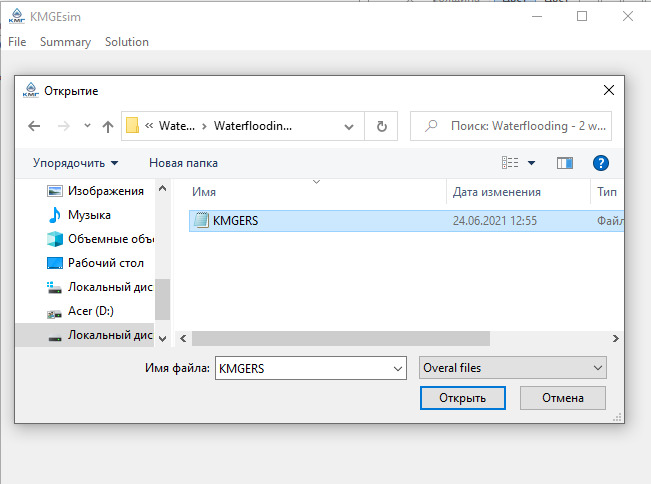 На рис. 7 представлен интерфейс визуализатора и окно для открытия файла с расширением OVERALL.