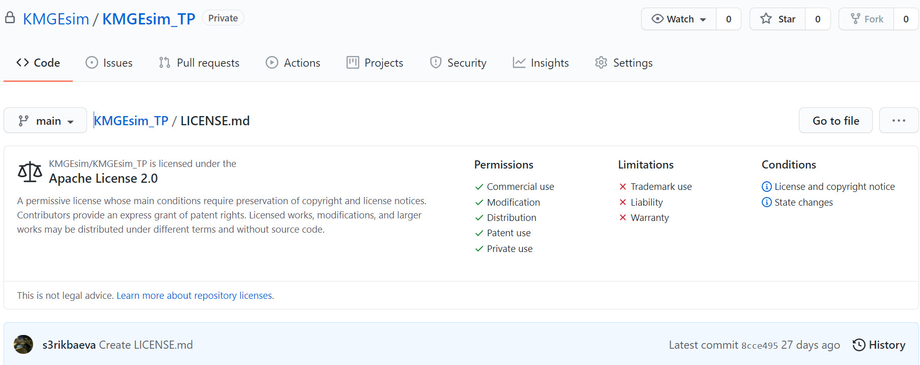 Рисунок 14. Демонстрация лицензии в проекте KMGEsim_TP