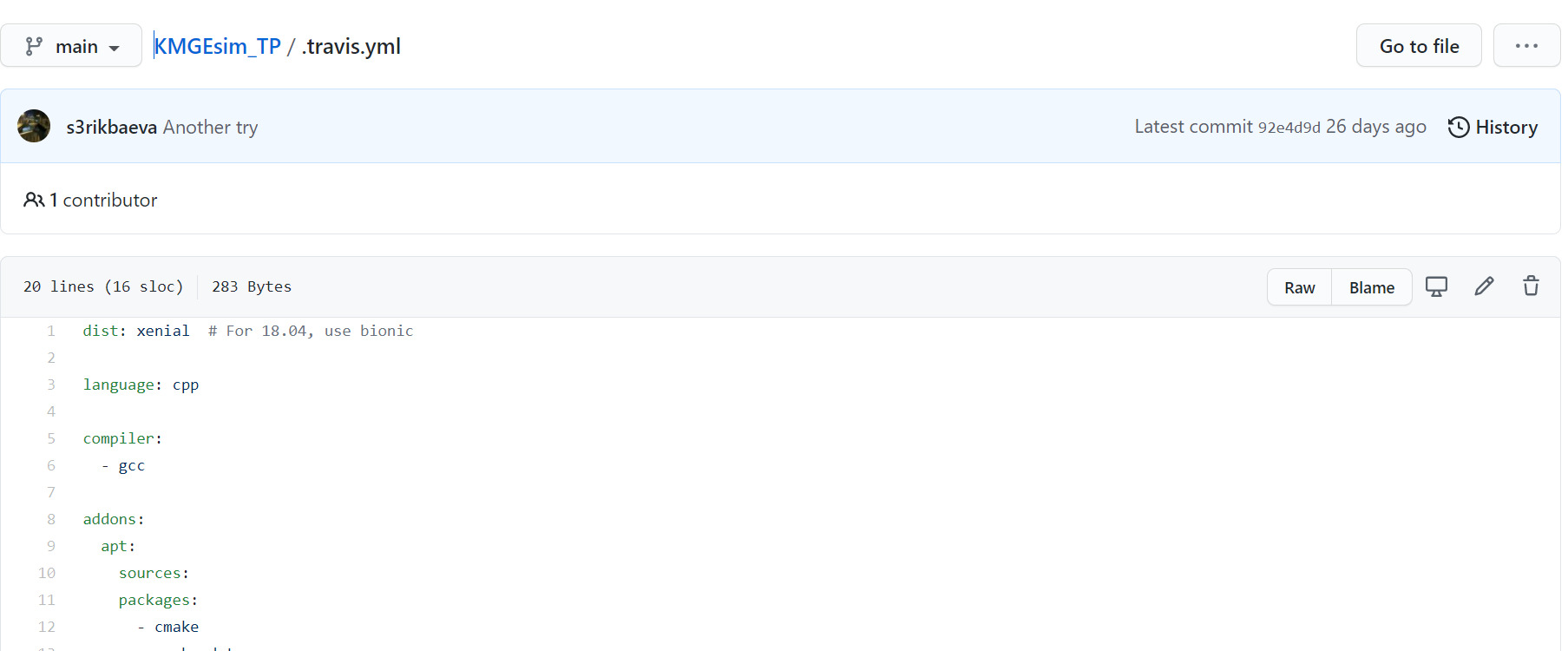 Рисунок 16. Travis CI в проекте KMGEsim_TP