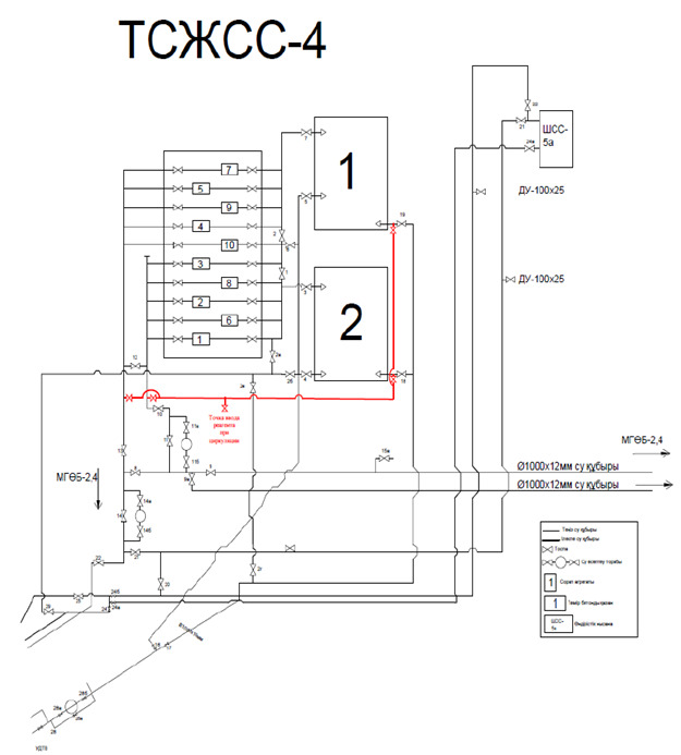 На рис. 6 представлена схема НСМ-4 с указанием предлагаемой линии рециркуляции воды.