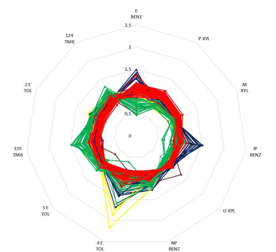 Рисунок 2. Звёздчатая диаграмма всех нефтей по фингерпринтингу (OpenLab)