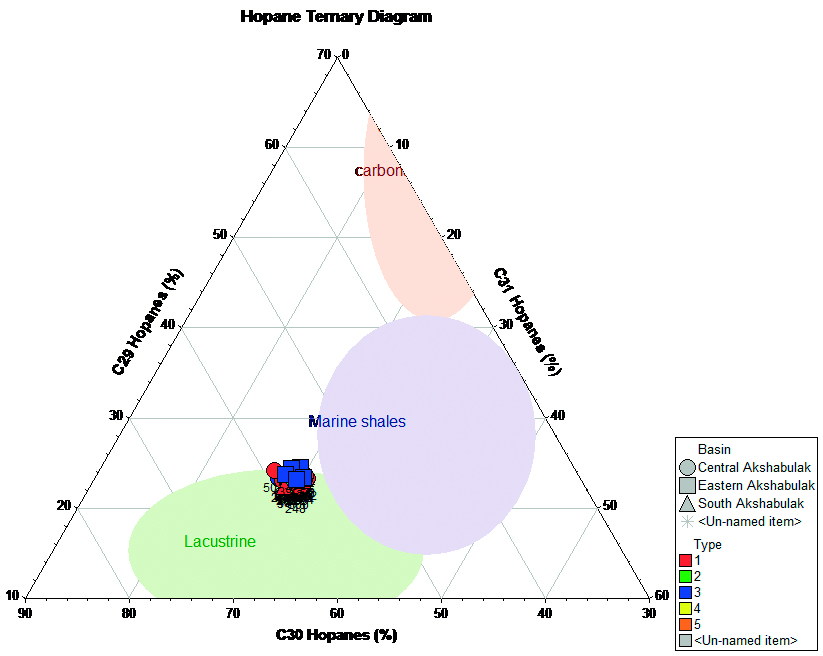 Рисунок 9. Тригонограмма гопанов в нефтях