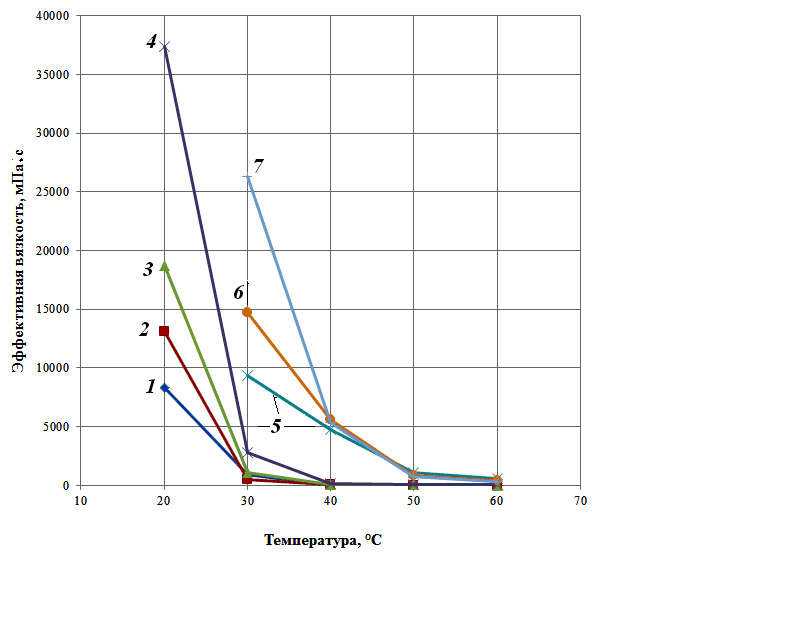 Существенный положительный эффект термообработки наблюдается лишь при условии некоторого оптимального соотношения температуры обработки и температуры последующей эксплуатации. Более того, при сравнительно небольших отклонениях от оптимальных условий термообработка может приводить к резкому ухудшению параметров текучести жидких сред вплоть до полного их застывания.