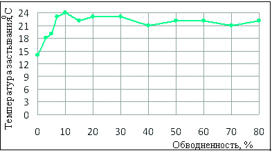 Таблица 3. Температура застывания при различных степенях обводненности и темпах охлаждения эмульсии
